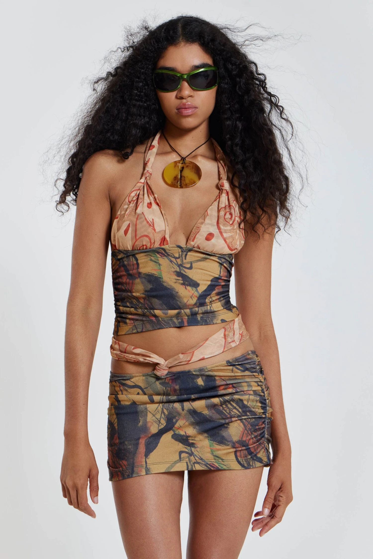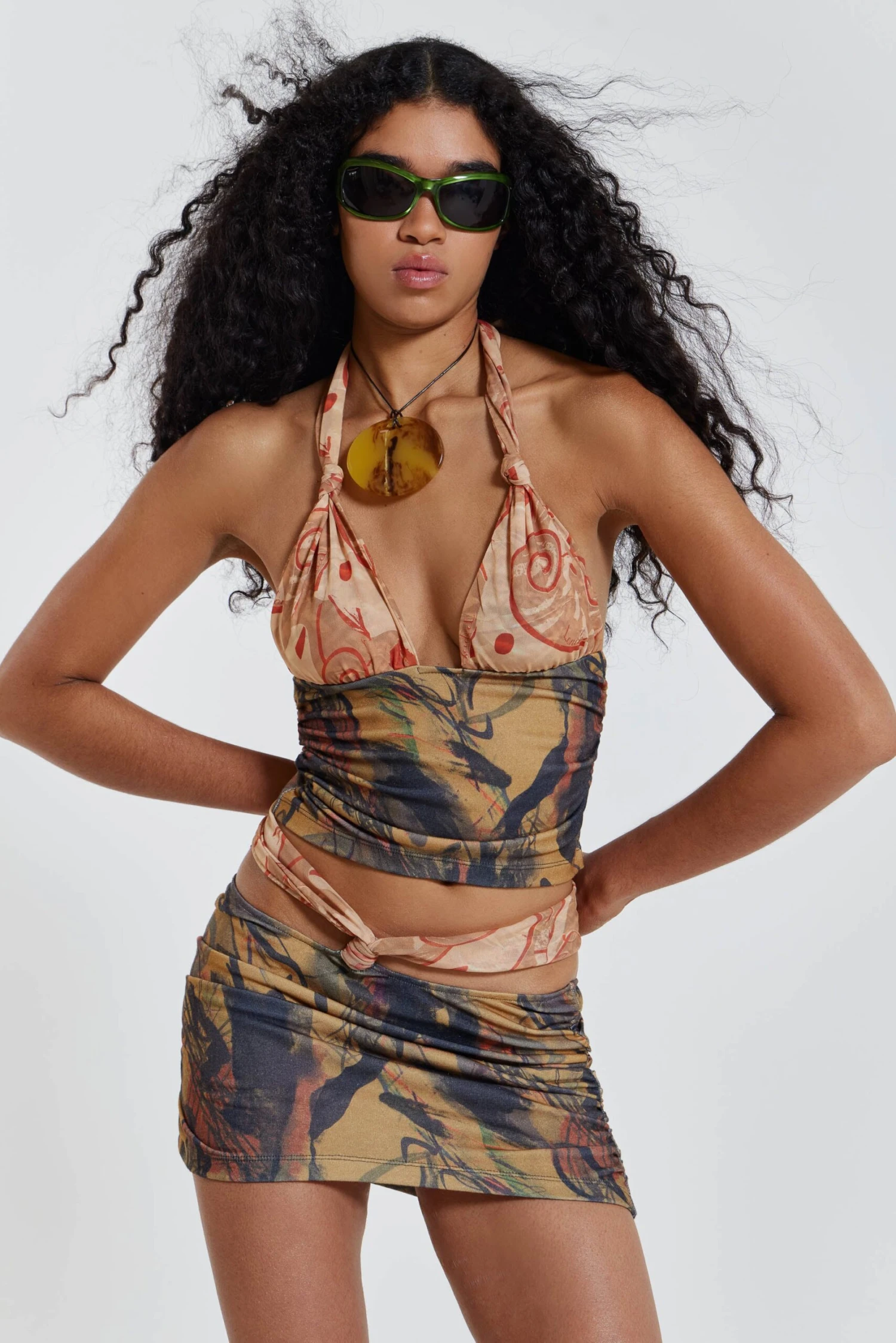 The Ammos Halterneck Beach Top is crafted in a earthy print lightweight fabric with a gathered front detail, featuring a functional halterneck tie fastening. Complete the ensemble with the matching beach skirt.