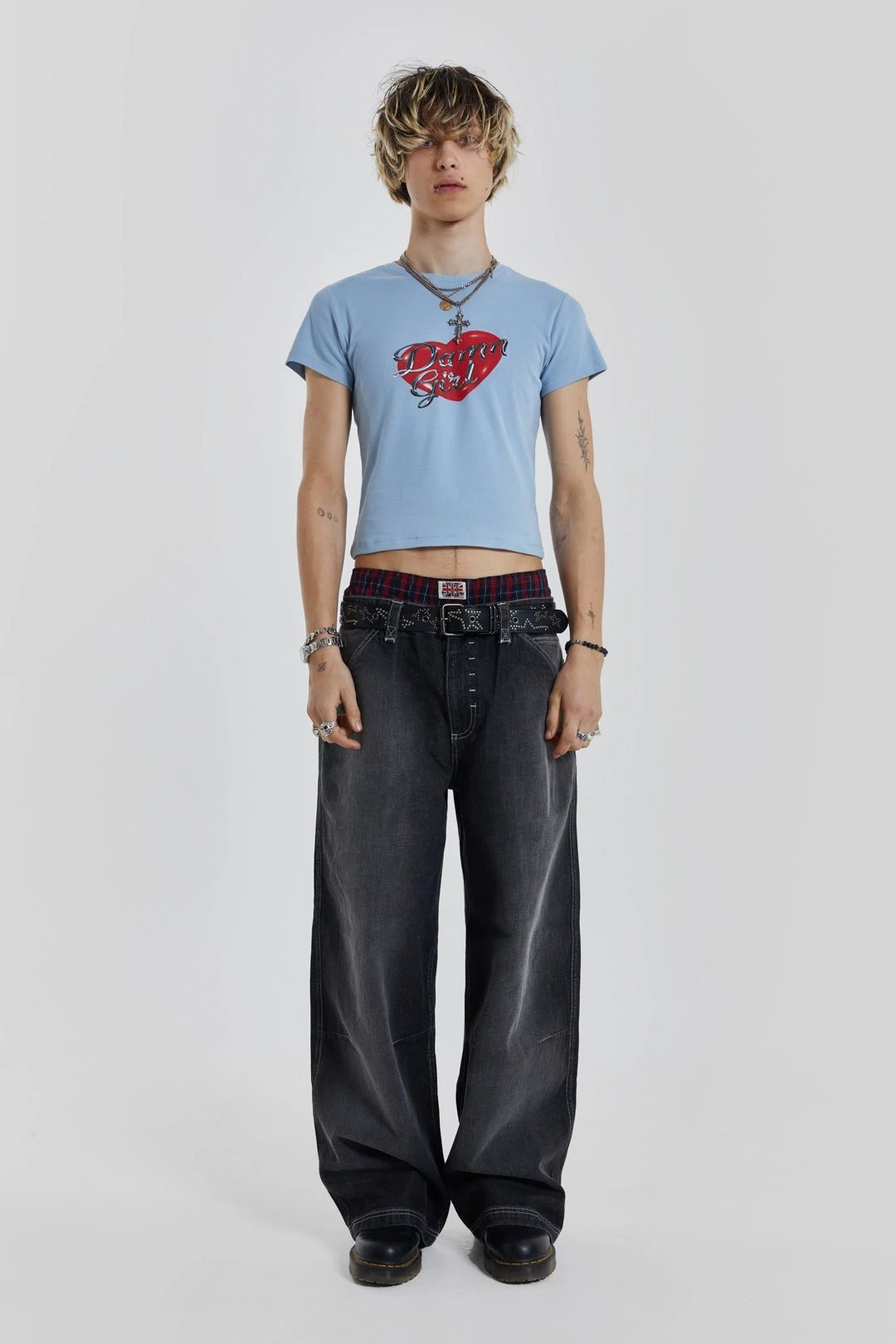 Our Damn Girl Tee offers a comfortable fit with its shrunken silhouette, crafted from soft premium single jersey. Featuring a chrome-look slogan print and finished with a bound rib neckband.