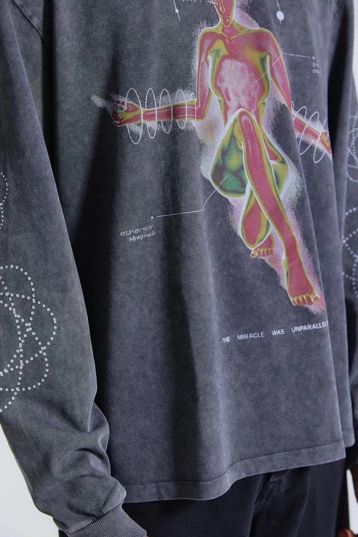 Energy Orb Print Acid Wash Long Sleeve Top
