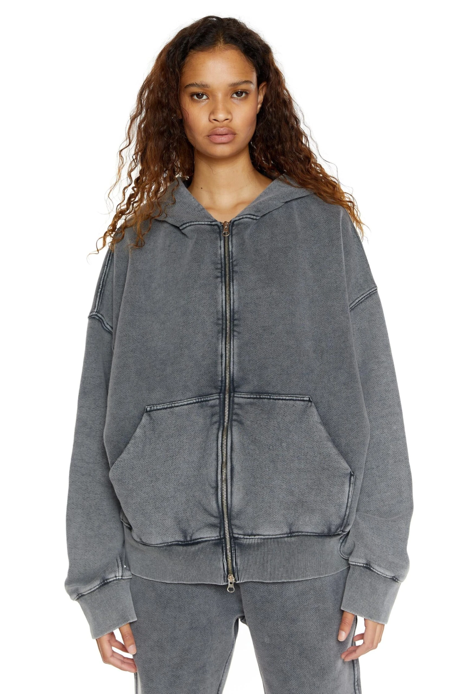 Chrome Grey Oversized Zip Up Hoodie