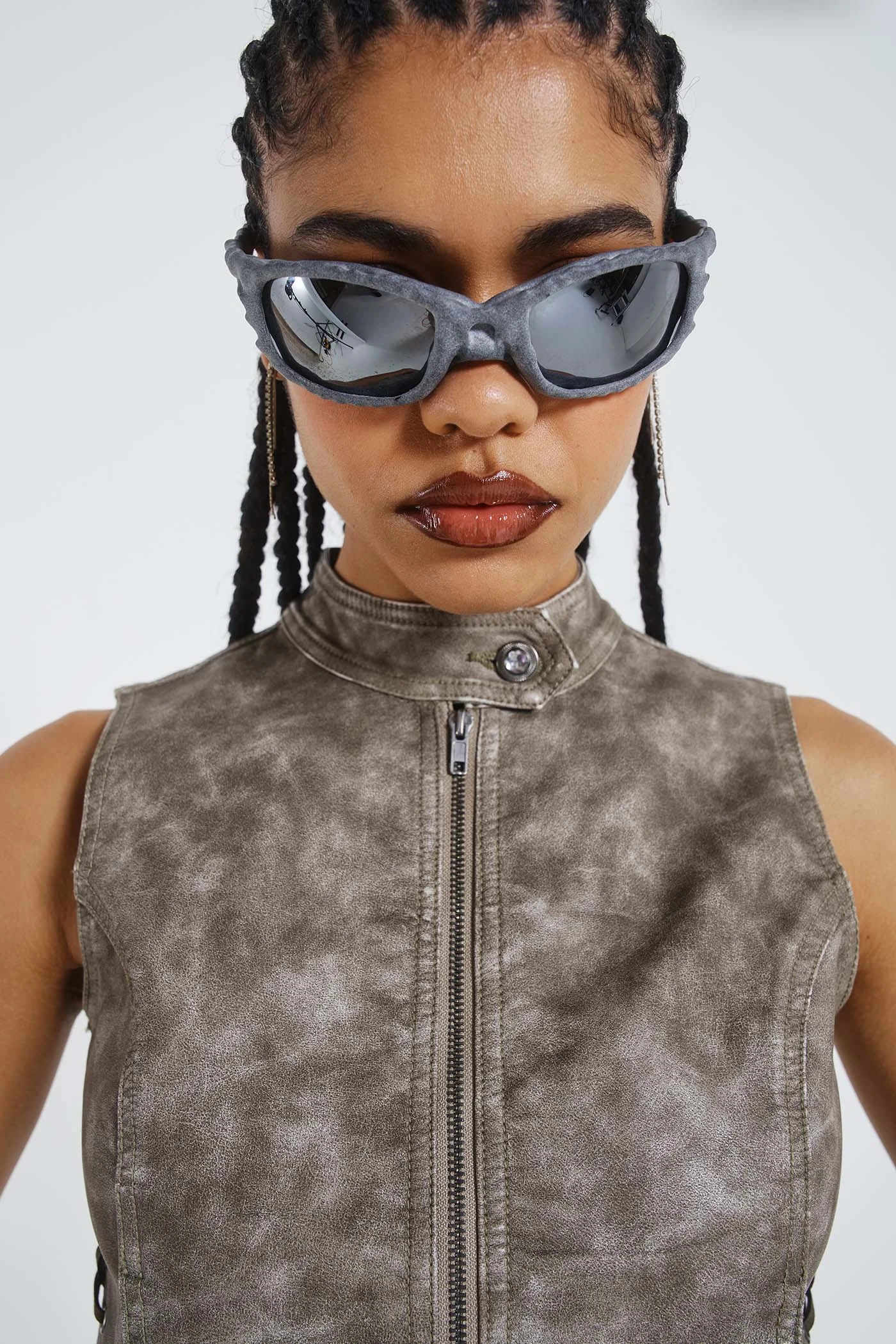 Elevate your wardrobe with the Steel Lace Up Sleeveless Vest, designed with a corset lace-up style at side seams, this vest features an exposed zip with gathered edge detailing. Pair with the matching hot pants for a complete ensemble.