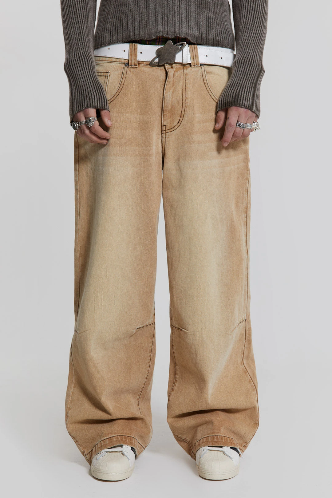 - Non-stretch denim in sand colourway